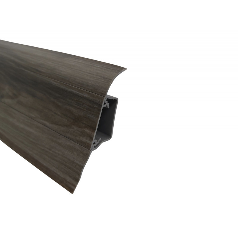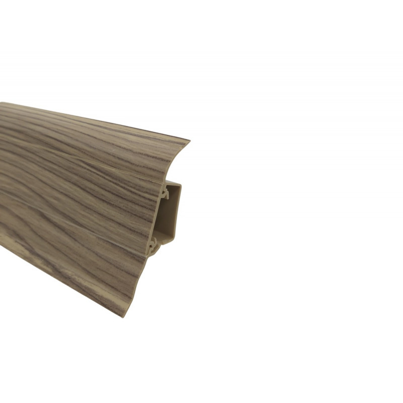 Soklová obvodová lišta SLK50 v dekoru Ořechového dřeva pro použití v kombinaci s PVC včetně všech potřebných doplňků, jako jsou rohy, spojky a koncovky. Tato lišta v sobě obsahuje kabelový kanálek, přičemž kabel je možné táhnout i skrz jednotlivé komponenty. Lišta je opatřena měkkými manžetami u podlahy a stěny. Vyrábí se z materiálu na bázi PVC.