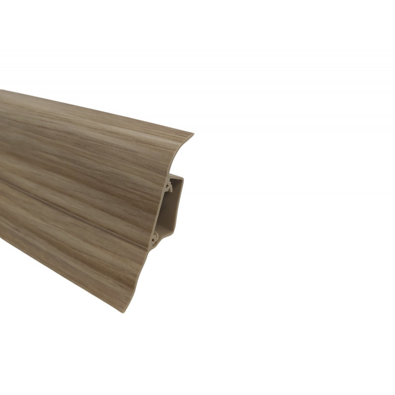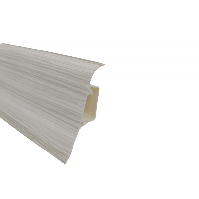 Soklová obvodová lišta SLK50 v dekoru jasanového dřeva pro použití v kombinaci s PVC včetně všech potřebných doplňků, jako jsou rohy, spojky a koncovky. Tato lišta v sobě obsahuje kabelový kanálek, přičemž kabel je možné táhnout i skrz jednotlivé komponenty. Lišta je opatřena měkkými manžetami u podlahy a stěny. Vyrábí se z materiálu na bázi PVC.