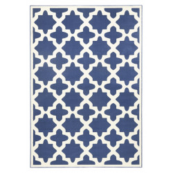 Modrý koberec s vintage motivem, který se vyrábí ze směsi akrylu, polyesteru, bavlny a viskózy. Jedná se proto o hebký a jemný kousek vhodný zejména do ložnice nebo obývacího pokoje. Co se údržby týče, doporučujeme vysávat zadní stranu koberce pomocí rotačního kartáče, který uvolní nečistoty.