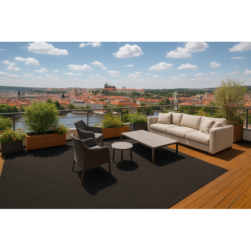 Metrážový koberec Wembley je jedinečný travní koberec v černé barvě s bílošedými vlákny. Má vpichovaný nízký vlas, který mu propůjčuje jednoduchou údržbu a čištění pomocí vysavače, což se ve venkovním prostředí velmi hodí. Uplatnění nalezne nejen venku, ale též ve vnitřních prostorech. Pro snadný odvod vody z koberce slouží nopy na spodní straně. Jsou to...