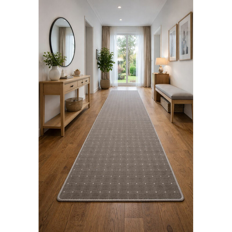 Běhoun Udinese v hnědé barvě je ideální volbou pro domácnost, kde je potřeba odolat velké zátěži. To umožňují použité kvalitní materiály, které jsou stále, odolné a velmi snadno se udržují. Vlas je vyrobený ze 100% polypropylenu, který je tvořený do "baculatých" smyček. Koberec je tvořený světlými body, které vytvářejí zajímavý čtvercový vzhled. Spodní...