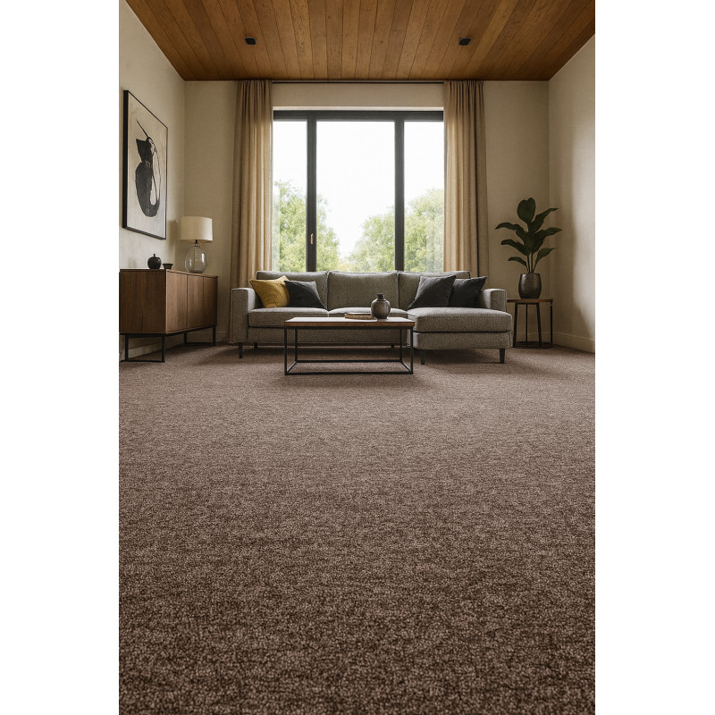 Hnědý metrážový koberec Orion 9259 je oblíbená podlahová krytina s krátkým smyčkovým vlasem na filcové podložce. Mezi její přednosti patří odolnost, snadná údržba a kompatibilita s podlahovým topením. Na rubové straně je filcová podložka, která tlumí zvuk. Koberec se hodí do všech obytných místností, především pak do ložnice nebo obývacího pokoje.