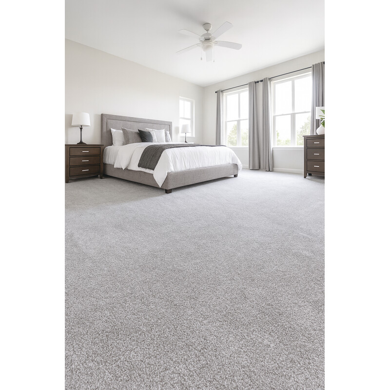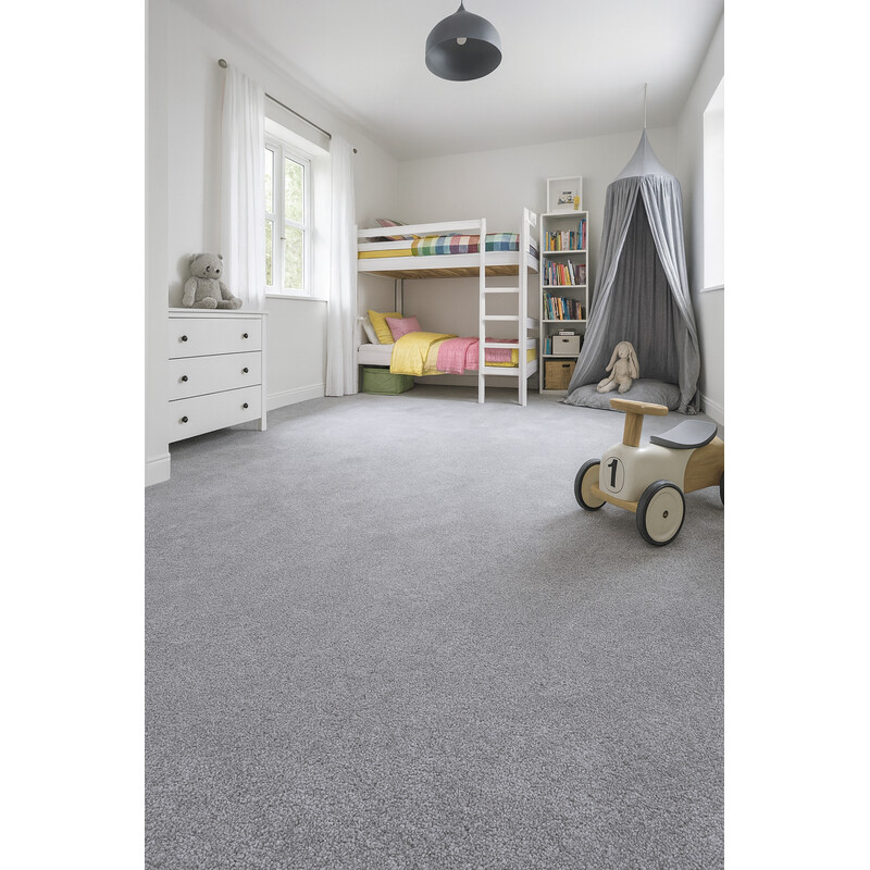Moderní metrážový koberec z kolekce Spinta v odstínu světle šedé barvy. Hodí se především do světlejšího interiéru především ve středně namáhaných bytových místnostech. Koberec je také možné položit na podlahové vytápění a zaručuje stálobarevnost na slunci.