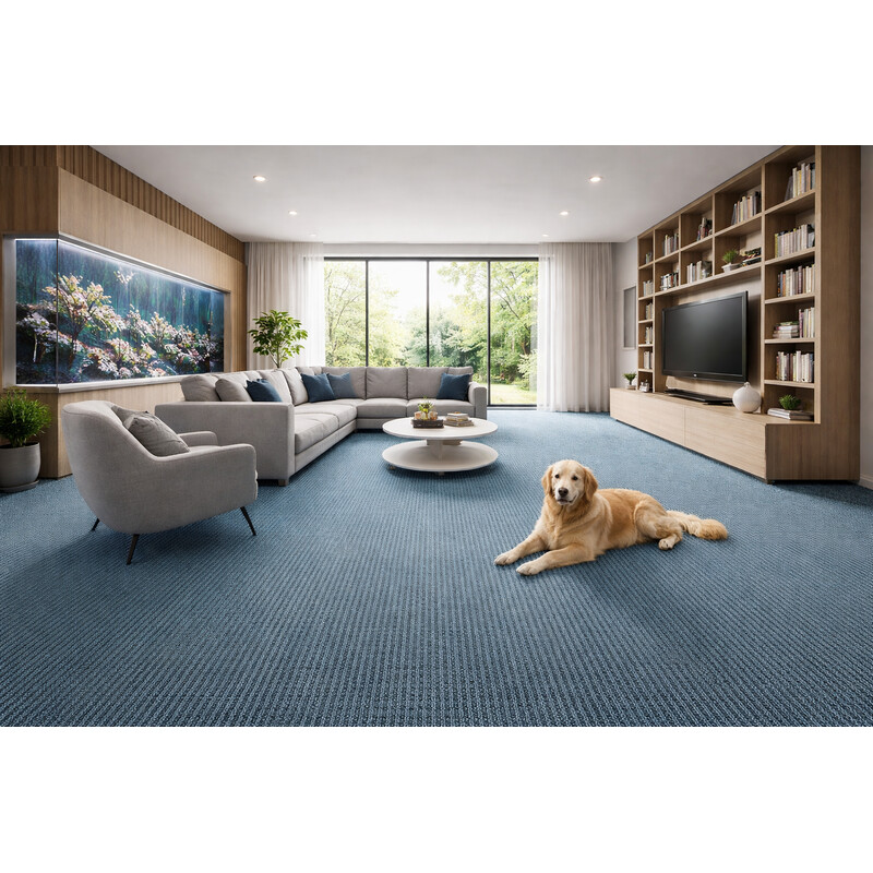 Modrý metrážový koberec Velveti 6973 má zajímavý vzor s rýhováním. Kromě vzhledu Vás však jistě zaujme i celou řadou praktických vlastností. Vyniká například vysokou odolností, o čemž vypovídá i kompatibilita s kolečkovou židlí nebo možnost položit ho na mírně zatížená schodiště. Velikou předností je také fantastická hebkost.