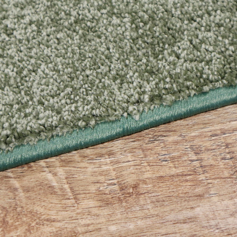 Zelený běhoun, který je uprostřed světlejší a po obvodu tmavší. Jedná se o kvalitní kousek vyrobený z polypropylenového vlákna se středně vysokým střiženým vlasem. Díky těmto parametrům se vyznačuje odolností, snadnou údržbou a velice příjemným povrchem.