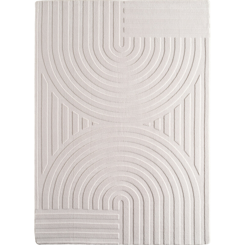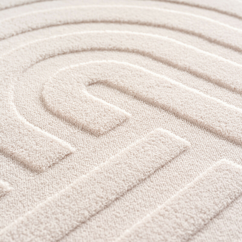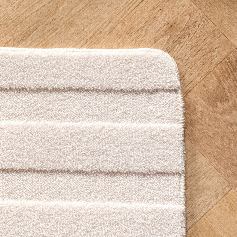 Běhoun v krémově bílé barvě s geometrickým 3D vzorem okamžitě upoutá svým moderním a elegantním vzhledem. Jeho středně vysoký vlas je neuvěřitelně příjemný na dotek, což oceníte při každém kroku. Navíc, díky ručnímu tkaní metodou hand-loom a preciznímu obšití, je nejen krásný, ale také odolný a vhodný i pro podlahy s vytápěním.