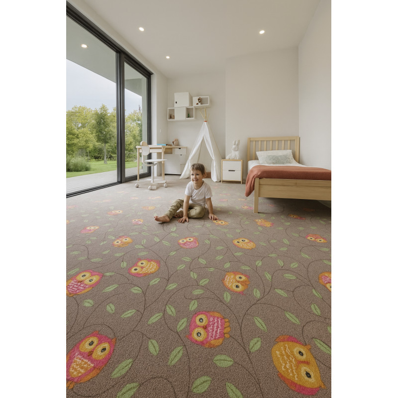 Dětský metrážový koberec Little Owls je ideální volbou do každého dětského pokoje! Tento hravý a přitom univerzální koberec v hnědé barvě je ozdoben roztomilými kreslenými sovičkami, které zaujmou každé dítě. Díky nízkému smyčkovému vlasu z polyamidu je koberec příjemný na dotek, velmi odolný a snadno udržovatelný. Spodní vrstva z filcu zajišťuje skvělou...