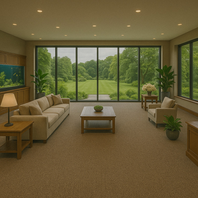 Tmavě zelený koberec udělá v každém komerčním interiéru parádu. Získá si Vás ale i celou řadou praktických vlastností. Je odolný, kompatibilní s kolečkovou židlí, snadný na údržbu a dobře tlumí hluk. To vše zajišťuje krátký smyčkový vlas a syntetická podložka na rubové straně.