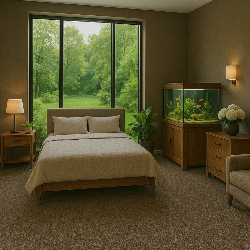 Tmavě hnědý koberec je velmi praktický. Jednak díky své barvě dobře kryje nečistoty a navíc má celou řadu užitečných vlastností. Je vyroben ze 100% polyamidu a má krátký smyčkový vlas. Proto je velmi odolný a snadný na údržbu. Další výhodou je například efektivní útlum kročejového i akustického hluku.