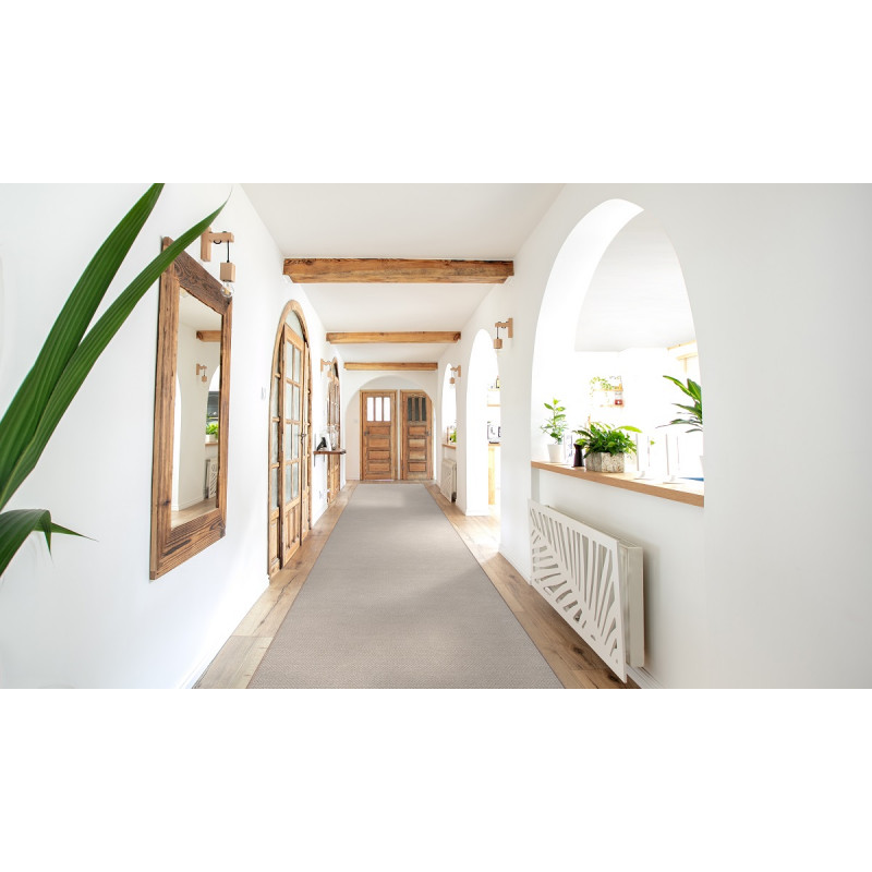 Krásny kobercový behúň vo svetlo béžovej farbe. Tento behúň z kolekcie Nature sa hodí do každého interiéru, ktorý vďaka svojej svetlej farbe krásne rozjasní. Môžete ho použiť napríklad ako bytový doplnok do každej chodby. Tento behúň je vyrobený zo 100% polypropylénu, má veľmi atraktívny vzhľad a jednoduchú údržbu. Rubová strana je textilná.