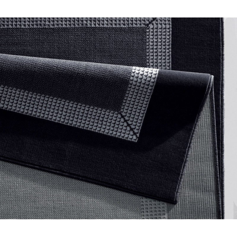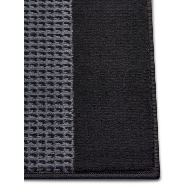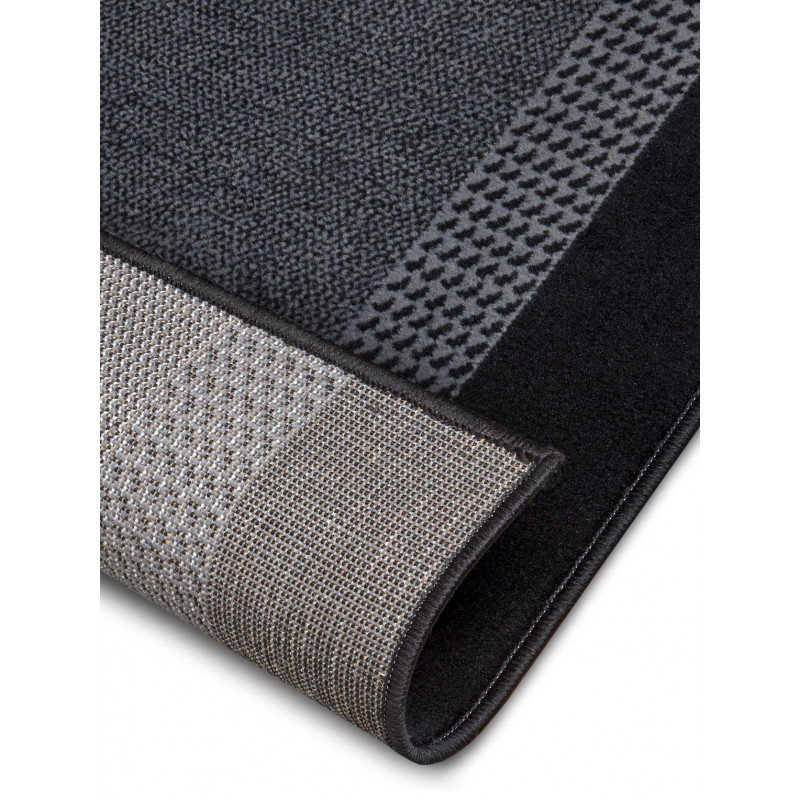 Čierno-sivý behúň s lemovaním po celom obvode, ktorý skvele padne do každej chodby alebo predsiene. Vyrába sa zo 100% polypropylénu a rubová strana je tvorená jutou. Stredne vysoký strihaný vlas zaisťuje, že je koberec mäkký a príjemný na došľap.