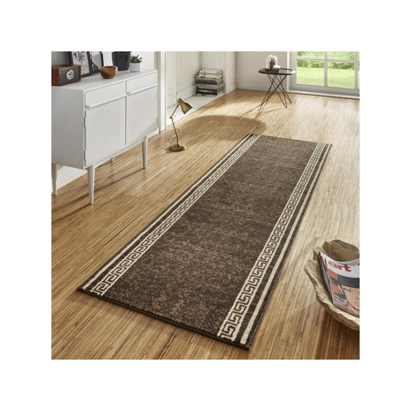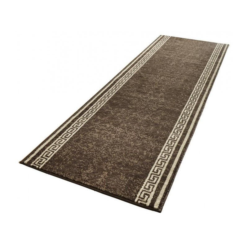 Moderný veľmi jednoduchý behúň z kolekcie Rekord vás nadchne svojou decentnosťou. Tento hnedý behúň bude veľmi jemnú ozdobou moderné i klasické chodby a nenaruší vám tak farebnú zladenosť vášho domova. Tento behúň sa neobšívá z dôvodu jeho veľmi pevného materiálu a gumových hrán.
