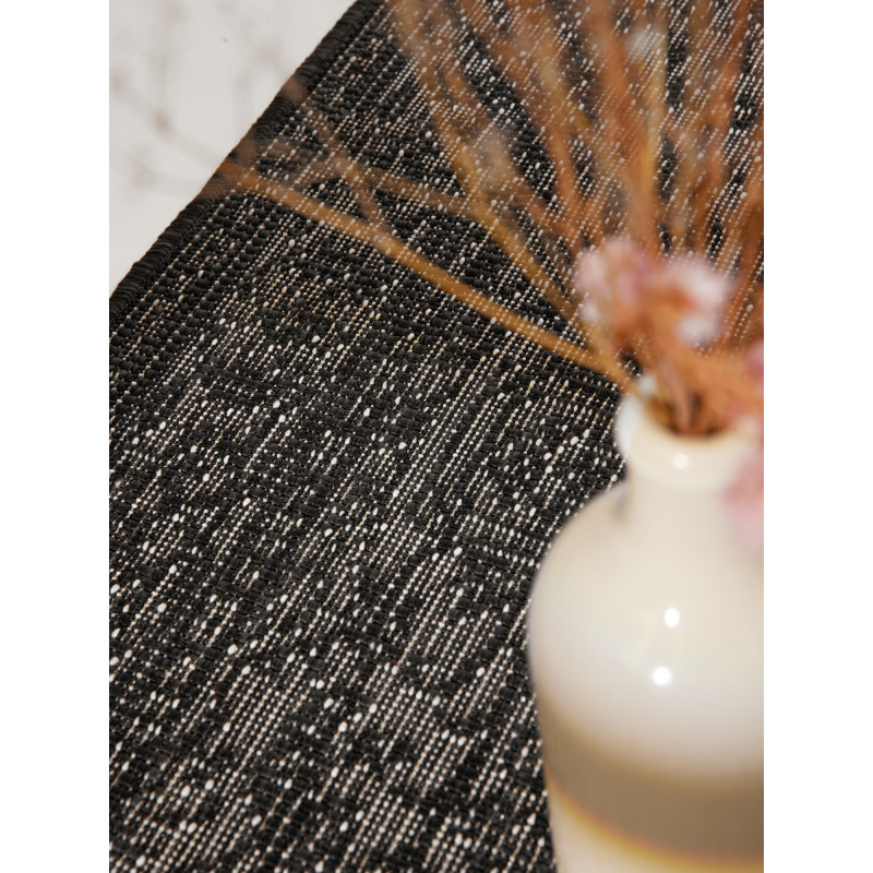 Běhoun zaujme svým elegantním černým odstínem s jemným šedým nádechem, který dodává interiéru sofistikovaný a moderní vzhled. Díky bouclé struktuře je odolný a zároveň si zachovává minimalistický a přirozený charakter. Jeho decentní design umožňuje snadné začlenění do obývacího pokoje, ložnice nebo chodby.