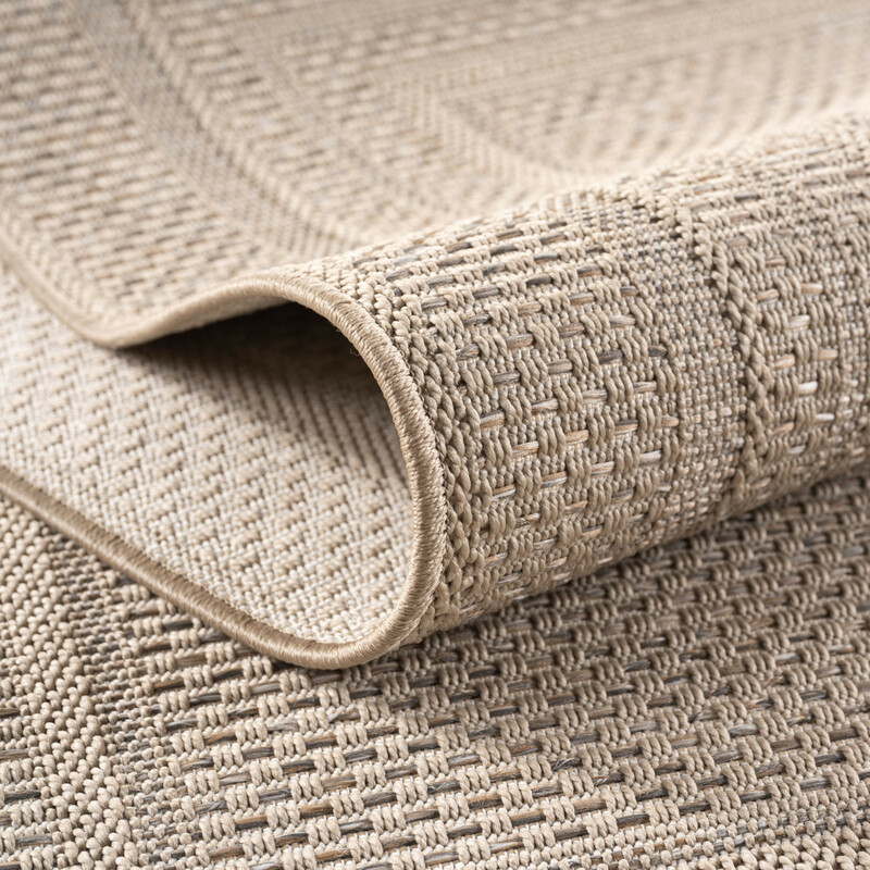 Minimalistický koberec s béžovým středem a černým lemováním dodá eleganci každé domácnosti, ať už ho položíte do obývacího pokoje nebo do chodby. Vyrábí se ze směsi odolné juty a hebkého polyesteru a černé lemování je z bavlny. Má antistatickou úpravu a můžete ho položit i na podlahové topení.