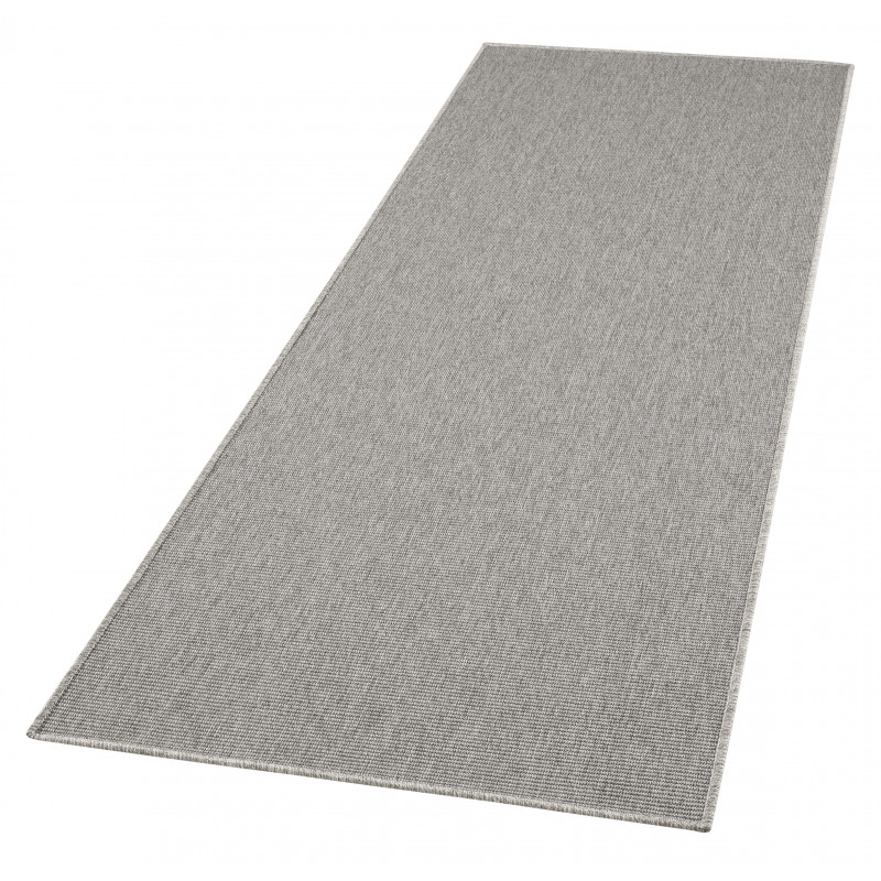 Moderný behúň z kolekcie nemeckej značky Hansa Home. Koberec je obojstranný. Z jednej strany je šedý, z druhej strany je krémovo svetlý. Koberec môžete kedykoľvek otočiť a zmeniť tak design interiéru. Koberec Twin-Wendeteppiche 103097 je tiež skvelou voľbou na dozdobenie vonkajšej terasy.