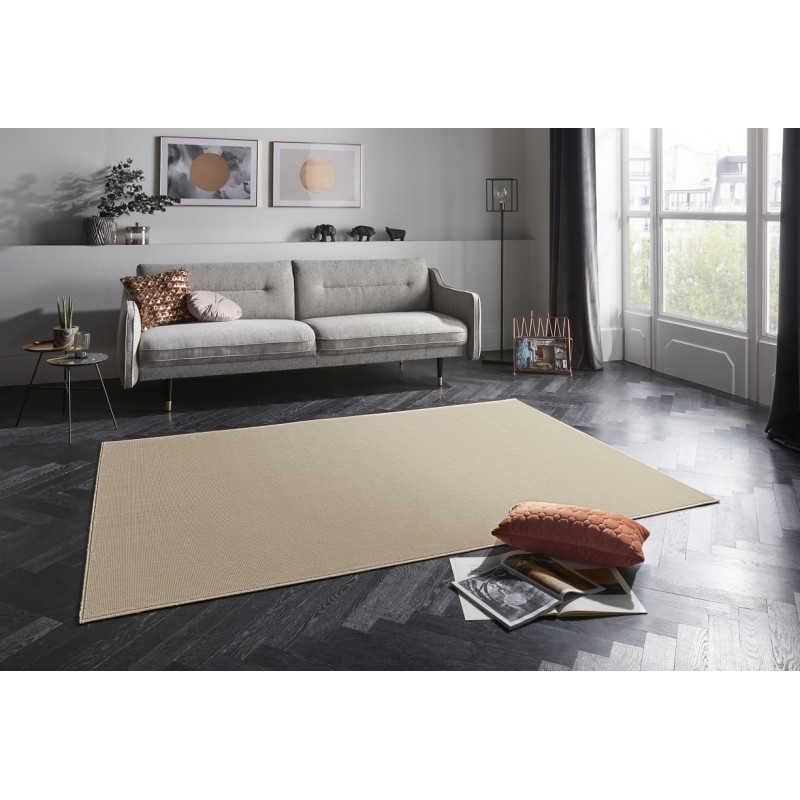 Stylový kusový koberec Ethno v moderním designu a univerzální béžové barvě, vyroben z materiálu polyproplen heatset frizé. Koberec se skvěle hodí do každého typu interiéru ve Vašem domě či bytě.