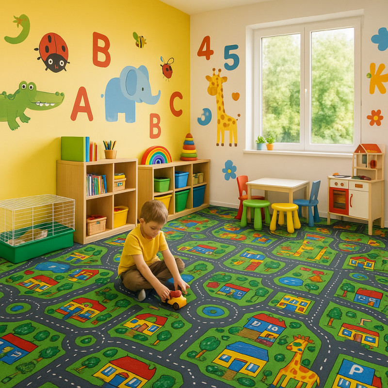 Poškození: zvlněný okrajMetrážový koberec s dětským vzorem, který potěší díky krátkému vlasu především velmi snadnou údržbou, která je u koberců určených pro děti více než potřeba. Tento pestrobarevný koberec s množstvím silnic je skvělou volbou nejen pro kluky, ale jistě i pro holky. Koberec byl vyroben ze 100% polypropylenového vlákna. Objednat si jej...