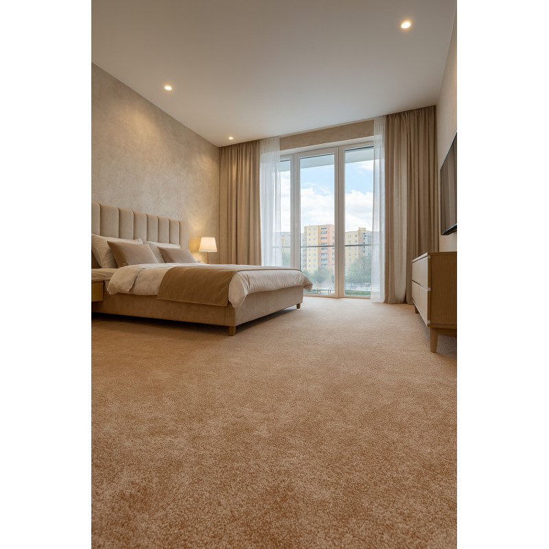 Metrážový koberec Serena v neutrální světle hnědé, který se velmi dobře bude vyjímat v místnosti s přírodními prvky. Střižený vlas je vyrobený z jemného polyamidu, který vykouzlí příjemný pocit na dotek bosou nohou. Díky neutrální barvě se koberec hodí do jakékoliv domácnosti. Spodní strana je opatřena filcem, který nejen snižuje kročejový hluk, ale též...
