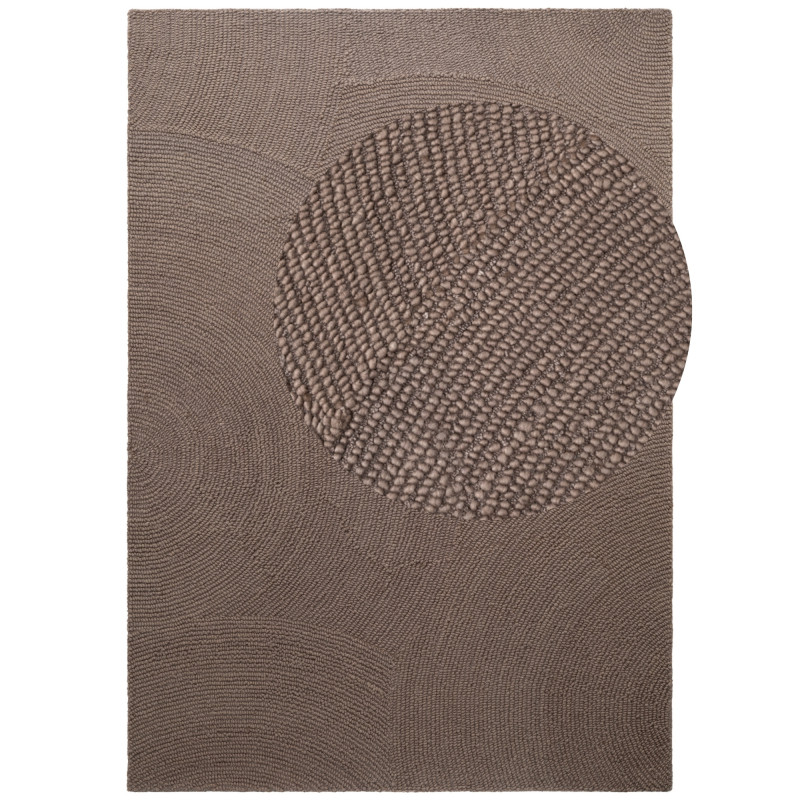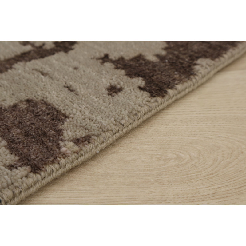Tmavo béžový koberec s výrazným geometrickým 3D vzorom pôsobí moderne a elegantne. Jeho stredne vysoký vlas z vlny je mäkký a zároveň skvele izoluje chlad. Precízne ručné tkanie a obšitie po celom obvode zaručujú dlhú životnosť a dokonalý vzhľad.