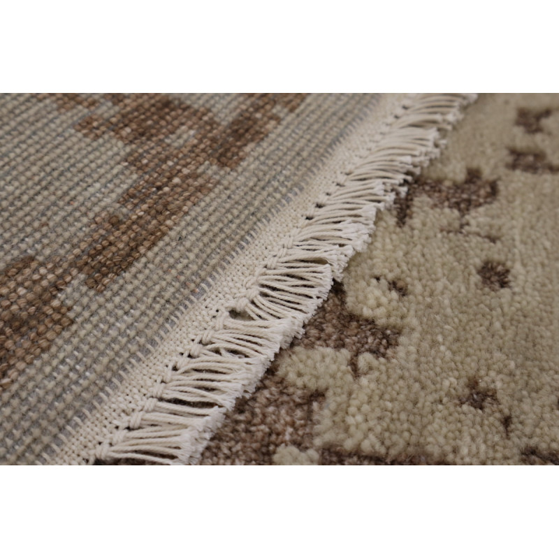 Indický ručne viazaný koberec, tmavo béžovej farby, je skvostom tradičného remesla a elegancie. Tento koberec, viazaný s precíznosťou a starostlivosťou, vyniká svojim jednoduchým vzorom, ktorý dodáva kobercu moderný a sofistikovaný vzhľad. Na kratších stranách je koberec zakončený jemnými strapcami, ktoré mu dodávajú ľahkosť a šarm. Dlhšie strany sú...