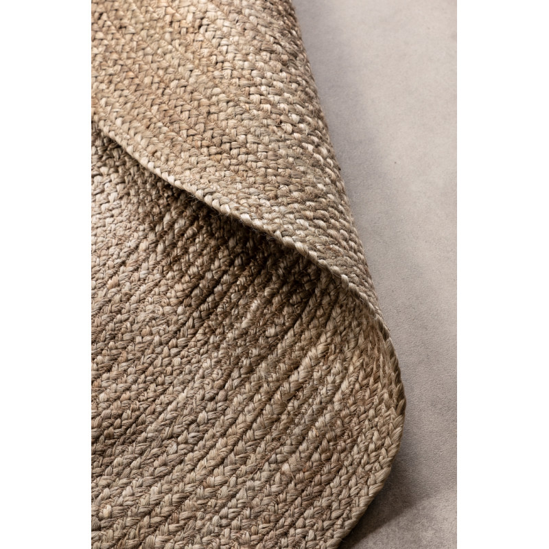 Okrúhly koberec Jutta z ručne tkanej prírodnej juty v prírodných tónoch slonovinovej, šedej a béžovej je jedinečný prírodný doplnok do interiéru aj na krytú terasu. Každý kus je originál vďaka ručnému spracovaniu a prírodne farbeným vláknam. Odolný, antistatický, certifikovaný OEKO-TEX a vhodný aj pre podlahové kúrenie.