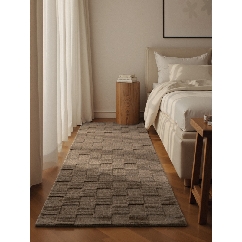 Tmavo béžový až hnedý behúň sa vyznačuje plastickým štvorcovým motívom, ktorý vytvára pôsobivý 3D efekt a opticky pripomína šachovnicu. Kombinácia prírodných tónov dodá interiéru teplý a útulný charakter, zatiaľ čo ručne tkaná vlna zaisťuje vysokú odolnosť aj dlhú životnosť. Povrch je príjemný na dotyk a vďaka svojim vlastnostiam tiež tlmí hluk a...