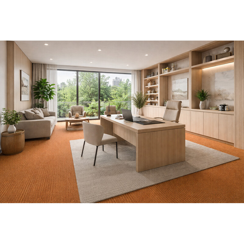 Metrážový koberec Velveti 6933 má zajímavý cihlový odstín. Bude ozdobou každé domácnosti a položit ho můžete i do komerčních interiérů s občasným užíváním, jako jsou konferenční místnosti nebo hotelové pokoje. Mezi jeho přednosti patří snadná údržba, izolace chladu či kompatibilita s kolečkovou židlí.