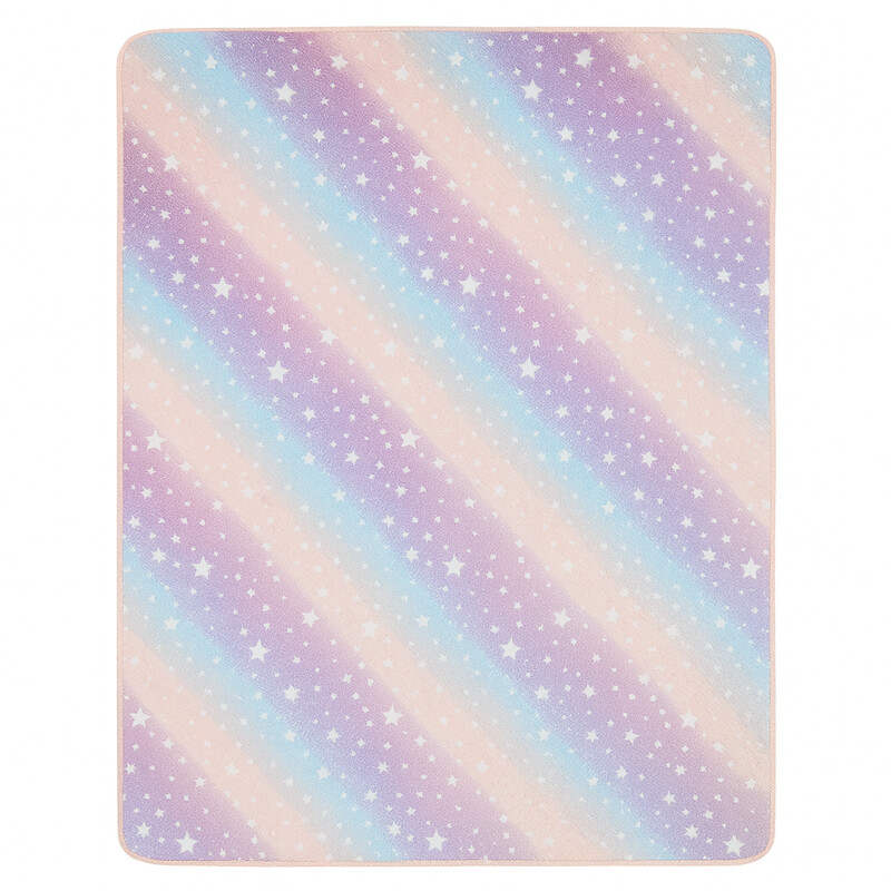 Kusový koberec Hvězdná obloha promění každý pokojíček v kouzelnou říši snů. Je vyrobený z jemného polyesteru s měkkým vstřiženým vlasem, po kterém je radost chodit bosky. Jeho pastelové přechody barev připomínají západ slunce a drobné hvězdičky rozeseté po povrchu dodávají koberci hravý, pohádkový vzhled. A když se setmí, přichází to pravé kouzlo, hvězdy...