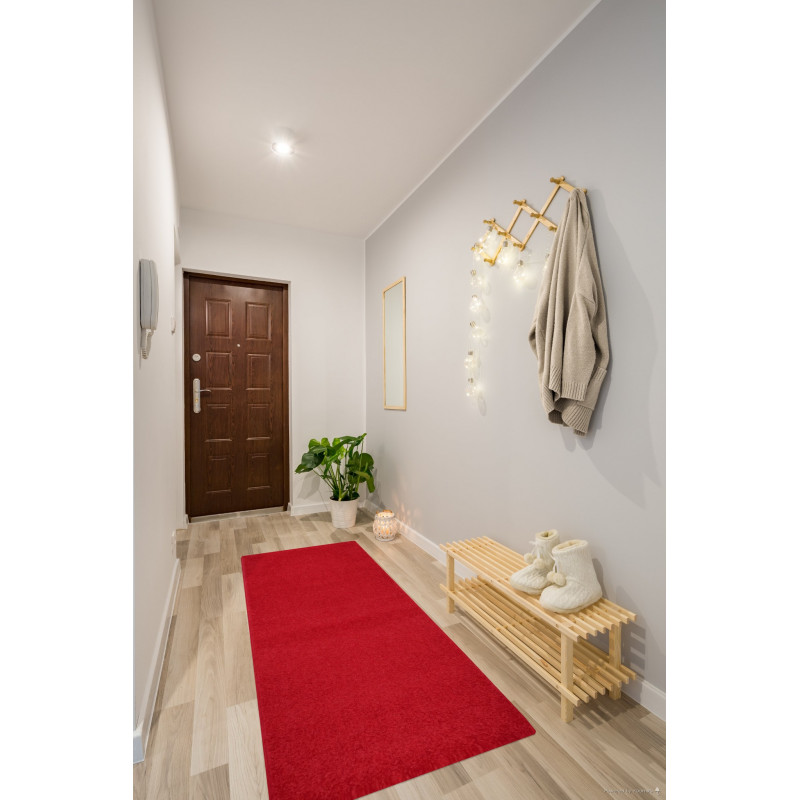 Behúň v elegantnej červenej farbe je skvelou voľbou pre každý interiér. Polyesterový povrch je príjemný na dotyk a pôsobí elegantne v každom priestore. Gumový podklad zabraňuje kĺzaniu a zvyšuje bezpečnosť v domácnosti. Hodí sa najmä do obývacej izby, kde vynikne jeho štýl a funkčnosť.