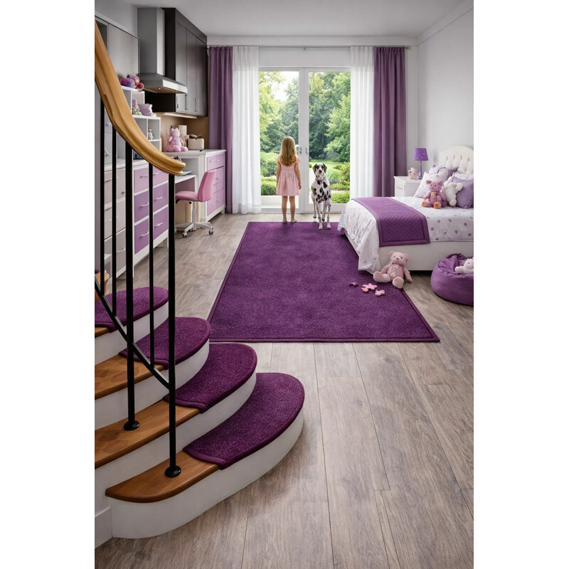 Kvalitní v Čechách vyrobené nášlapy na schody ve fialové. Nášlapy jsou obšité chemlonovou nití. Vespodu najdete oboustrannou lepící pásku pro snadné přichycení na schody. Nášlapy plní nejen estetickou funkci, ale také chrání schody proti mechanickému poškození. Zejména však chrání Vás proti uklouznutí. Uvedené rozměry jsou počítány vč. cca 4cm ohnuté části.