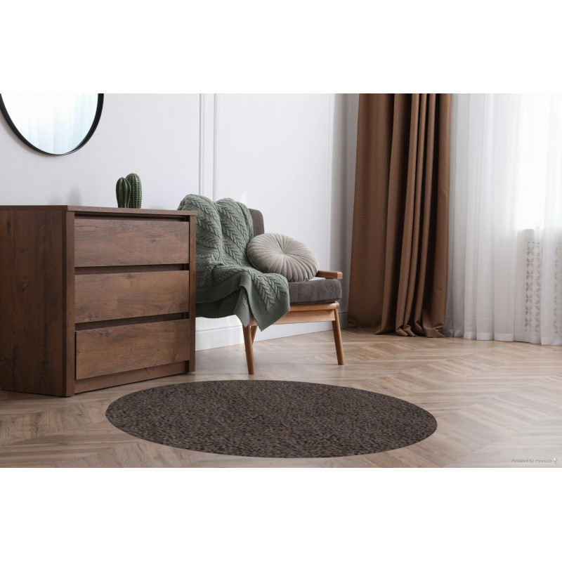 Hnědý kruhový koberec vnáší do interiéru hřejivou atmosféru a jemný nádech elegance. Jeho povrch s nízkým střiženým vlasem působí hladce a vytváří zajímavý efekt drobných „dlaždiček“, který ožívá při každém dopadu světla. Koberec je pečlivě obšitý pro čistý a upravený vzhled. Odolný a snadno udržovatelný materiál zaručuje, že si koberec svůj kouzelný...