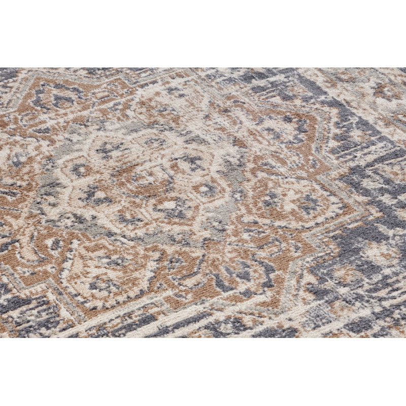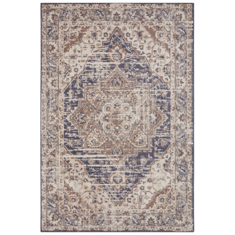 Vintage koberec v modro-béžovém provedení s propracovaným medailonem uprostřed. Ozdobí každou domácnost a nejlépe si jeho měkký a komfortní povrch budete užívat v ložnici u postele nebo v obývacím pokoji u pohovky. Díky obšití po celém obvodu se mu netřepí okraje.