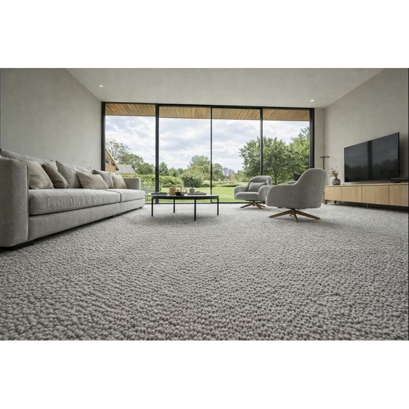 Světle šedý metrážový koberec Story 9172 Vás potěší velmi příznivou cenou i řadou praktických vlastností. Jedná se o podlahovou krytinu s krátkým smyčkovým vlasem vyrobeným ze 100% polypropylenu. Proto je koberec odolný, snadný na údržbu a měkký při došlapu. Další výhodou je kompatibilita s podlahovým topením.