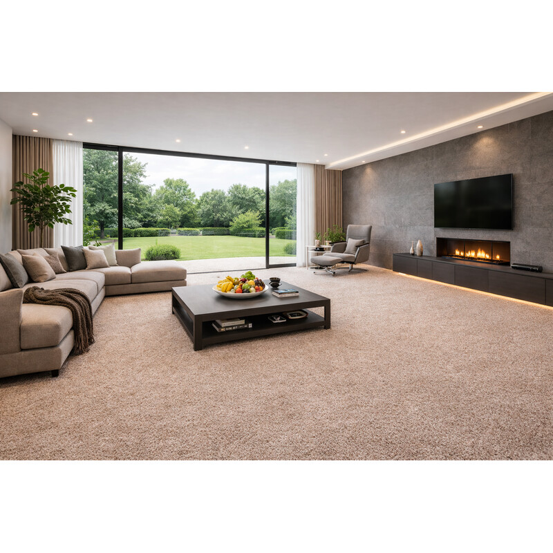 Béžový metrážžový koberec s hnědým nádechem, který se hodí především do domácností se střední zátěží. Je totiž vyroben z pevného polypropylenu, a proto se jedná o odolný kousek. Mezi jeho přednosti patří snadná údržba a komfortní došlap. To zajišťuje krátký vlas typu twist, který je pružný.