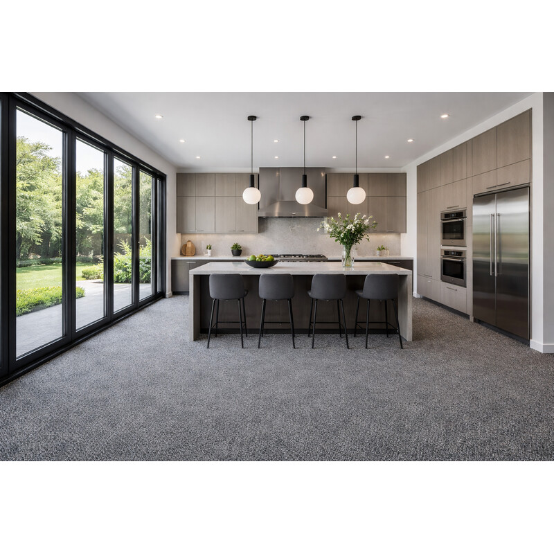 Šedý metrážový koberec Velvet Rock 6994 díky své neutrální barvě ladí ke každému nábytku. Využití najde v domácnostech i komerčních interiérech a položit ho můžete i na mírně zatížená schodiště. Mezi jeho přednosti patří snadná údržba, efektivní izolace chladu či kompatibilita s kolečkovou židlí.