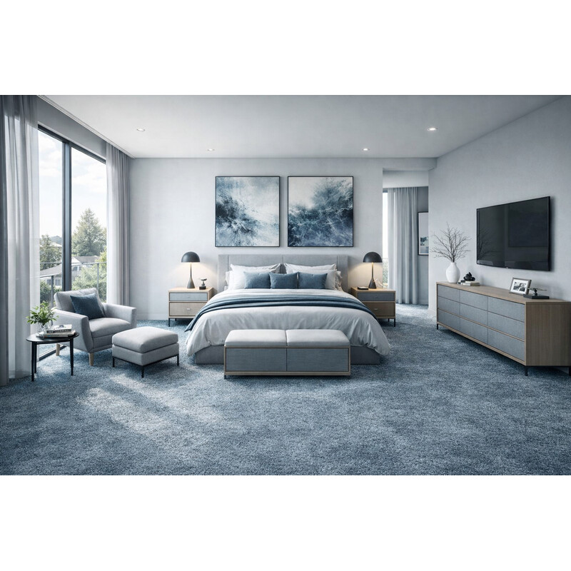 Modrý metrážový koberec Velvet Rock 6974 Vás potěší extrémní hebkostí i celou řadou praktických vlastností. Je vyroben z hebkého polyamidu a má krátký střižený vlas. Tyto parametry zajišťují vysokou odolnost, pevnost a snadnou údržbu. Koberec se hodí do domácností i komerčních interiérů s občasným užíváním.