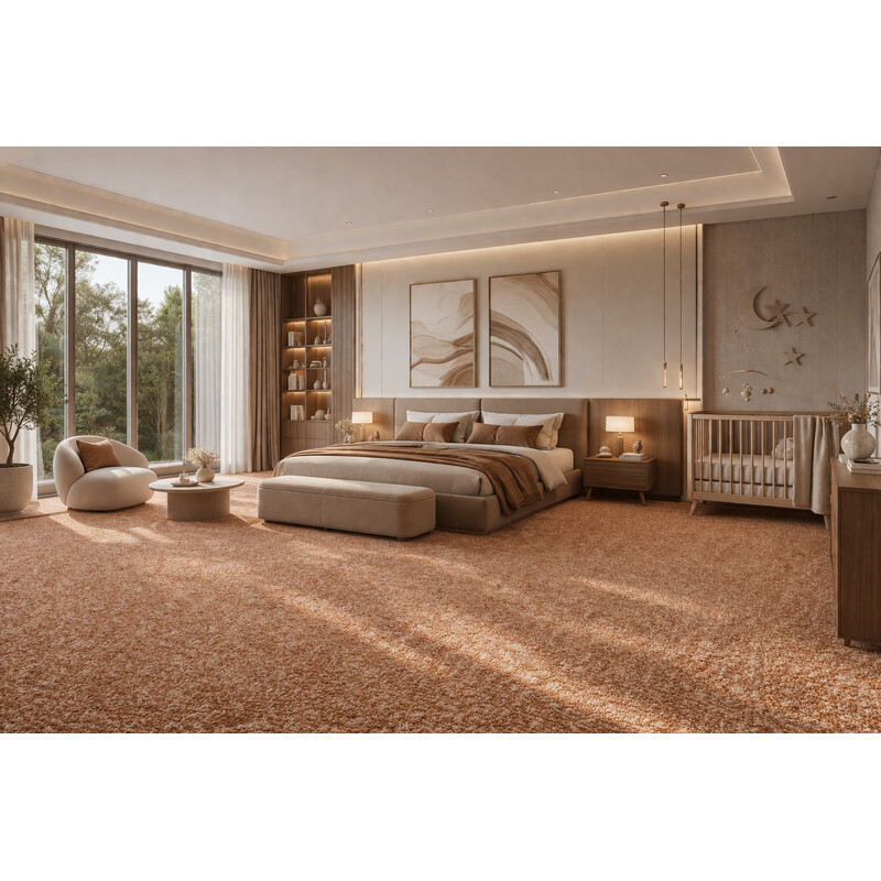 Hnědý metrážový koberec Velvet Rock 6954 patří mezi luxusní podlahové krytiny. Je totiž fantasticky hebký a kvalitní zároveň. Díky střiženému vlasu z polyamidu je odolný, snadný na údržbu a měkký při došlapu. Podložka na rubové straně zase efektivně izoluje chlad. Další výhodou je kompatibilita s kolečkovou židlí a podlahovým topením.