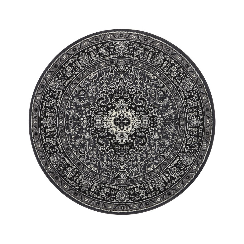 Vintage kruhový koberec s orientálním vzorem, který barvou připomíná myší kožíšek. Nejlépe se hodí do obývacího pokoje ke gauči nebo do ložnice k posteli, protože je měkký a příjemný na dotek i došlap. Vyrábí se totiž ze 100% polypropylenu a má středně vysoký střižený vlas.