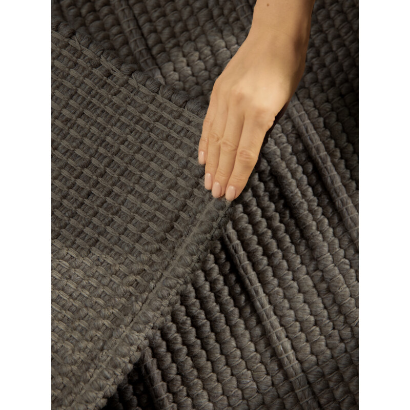 Tmavší koberec je naopak praktičtější v rušnějším provozu, lépe skryje drobné nečistoty a dodá místnosti pocit stability a útulnosti. Skvělý je třeba do obýváku nebo chodby.