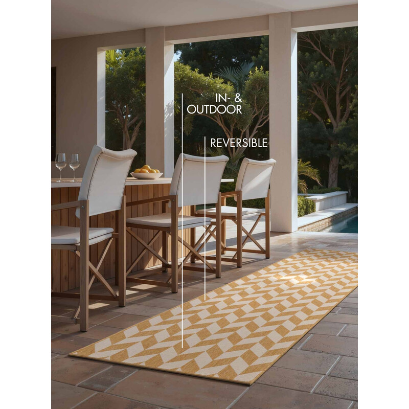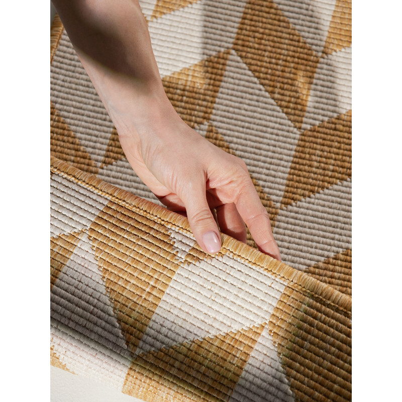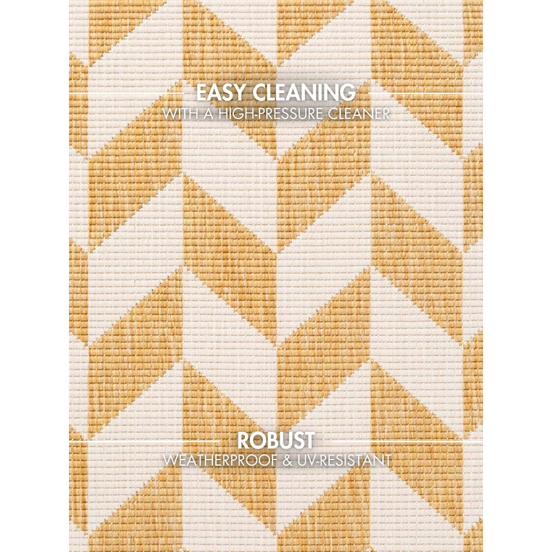 Terrick v kombinaci okrové a bílé z kolekce Haringey rozzáří prostor jako slunce po týdnu deštivého počasí. Hodí se na terasu, balkon, do předsíně i do obýváku, který si zaslouží trochu charakteru. Plochá vazba z odolného polypropylenu se nebojí počasí, mokrých bot ani rušného provozu. Bonus navíc: oboustranný, takže máte dva designy v jednom kuse....