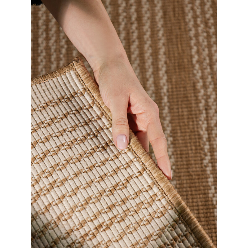 Terrick z kolekce Haringey nabízí jutovo-bílou variantu, která krásně oživí přírodní interiéry i venkovní posezení. Hodí se na terasu, balkon, do předsíně i do obýváku, který si zaslouží trochu charakteru. Plochá vazba z odolného polypropylenu se nebojí počasí, mokrých bot ani rušného provozu. Bonus navíc: oboustranný, takže máte dva designy v jednom...