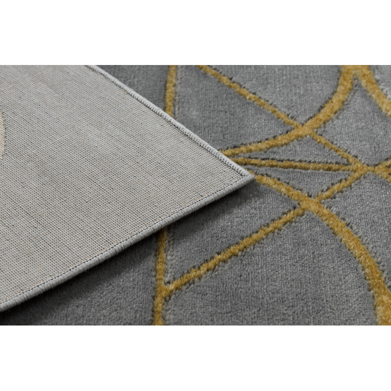 Šedý koberec s melírovaným základem je protkaný křivkami, které vytvářejí kosočtverce a lichoběžníky. Povedený geometrický motiv má navíc 3D efekt díky kombinaci středně vysokých smyček a vyššího střiženého vlasu. Polypropylen heatset, ze kterého je koberec vyroben, zajišťuje odolnost a příjemný povrch.