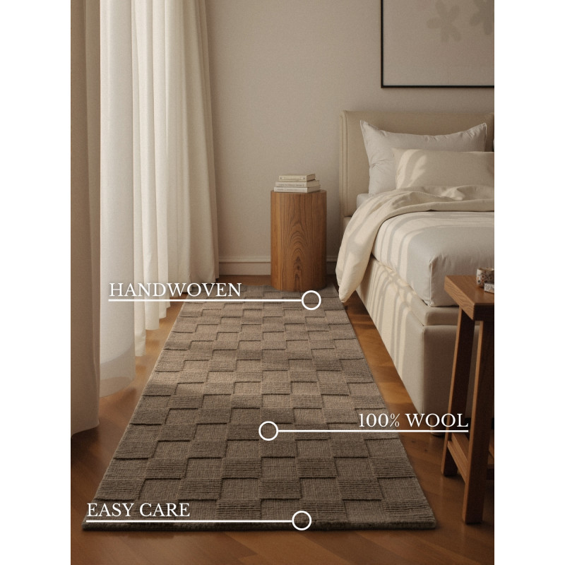Hnědý běhoun s výrazným čtvercovým vzorem v 3D provedení zaujme svým strukturovaným povrchem, který připomíná šachovnici. Teplý odstín hnědé vnáší do interiéru přirozenou eleganci a harmonii, zatímco ručně tkané zpracování z prvotřídní vlny zaručuje kvalitu i dlouhou životnost. Díky své robustní a přesto jemné textuře působí útulně a zároveň prakticky –...