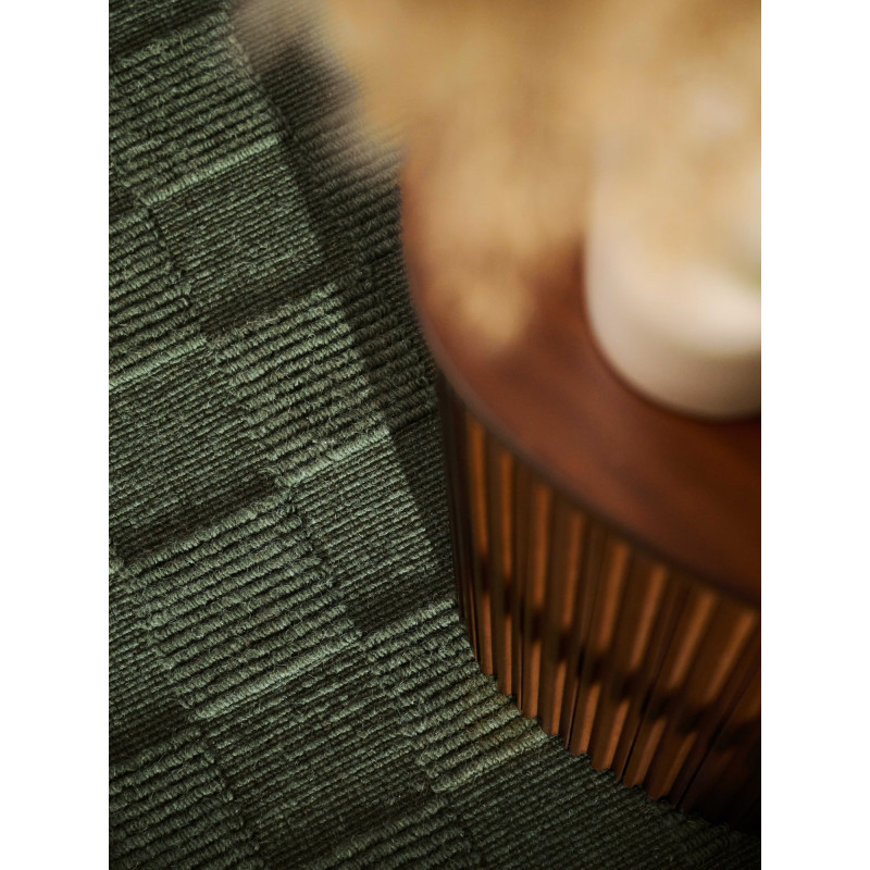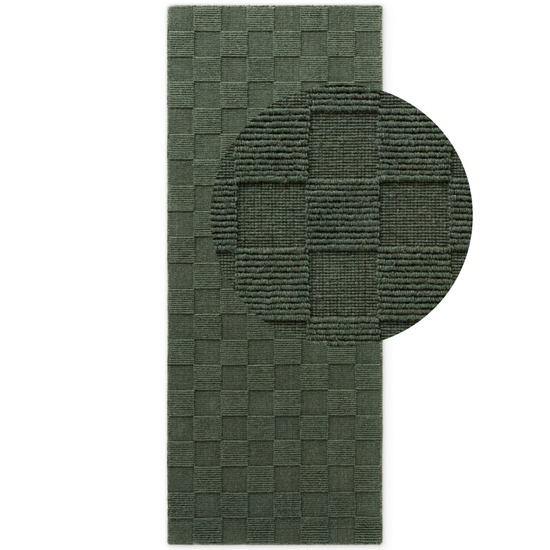 Tmavě zelený běhoun se čtvercovým motivem působí výrazně a zároveň elegantně díky svému 3D efektu připomínajícímu šachovnici. Sytý odstín zelené vnese do prostoru klid a harmonii, zatímco ručně tkaná vlna zajistí odolnost a dlouhou životnost. Povrch je měkký na dotek, příjemně zatepluje a přispívá ke zlepšení akustiky v místnosti. Díky svému modernímu...