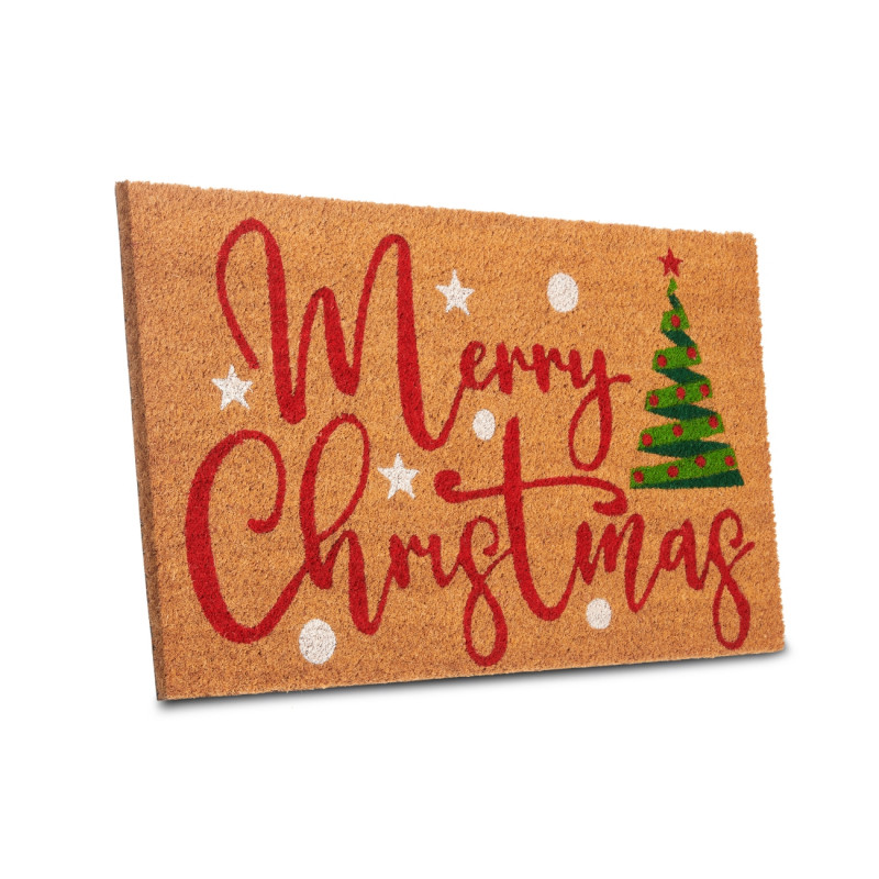 Tato kokosová rohožka s anglickým nápisem „Veselé Vánoce“ a vánočním stromečkem je skvělým způsobem, jak přivítat hosty během sváteční sezóny. Stylový design s klasickým vánočním motivem dodá vašemu vchodu kouzelnou atmosféru. Rohožka je vyrobena ze 100% kokosového vlákna, což zajišťuje její odolnost a schopnost účinně očistit obuv. Spodní vrstva z PVC ji...