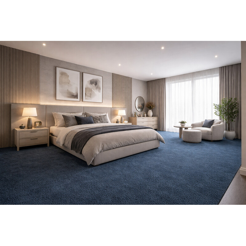 Tmavě modrý metrážový koberec e-blitz je skvělou volbou pro prostory s vyšší intenzitou zátěží, díky své odolnosti a robustní konstrukci. Modrá barva přináší do interiéru elegantní vzhled, zatímco kvalitní materiály zaručují dlouhou životnost koberce i při intenzivním provozu. Je ideální pro komerční prostory, jako jsou kanceláře, obchody nebo školy, kde...