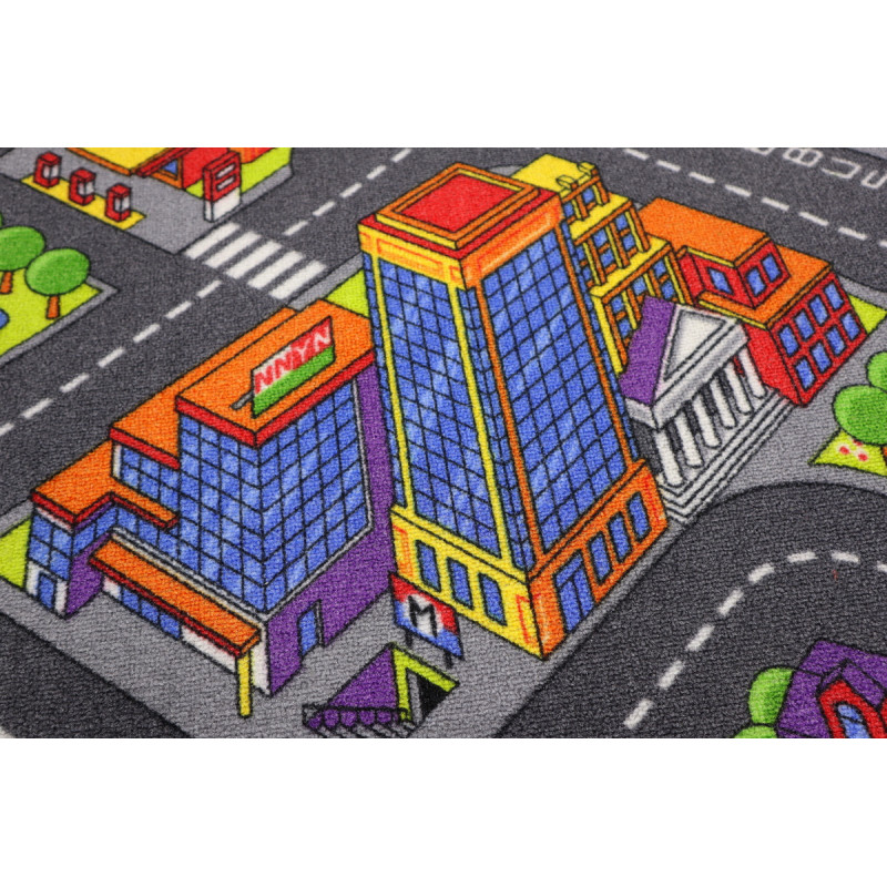 Dětský koberec Big City je hravý a barevný koberec plný malých dobrodružství, který promění každý dětský pokoj v živé město. Je na něm vykreslená síť šedých silnic s bílým dopravním značením, kruhovými objezdy, přechody, parkovišti a odbočkami, takže je ideální pro hraní s autíčky. Město doplňuje pestrá architektura, vysoké mrakodrapy, obytné domy,...