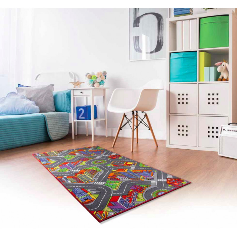Pěkný dětský kusový koberec Smart kids s motivem silnice je skvělým kobercem nejen pro děti, ale také pro rodiče. Jedná se o koberec s kratším vlasem, takže se snadno čistí a udržuje. Potěší příznivou cenou i ručně vyřezávaným vzorem. Vyrábí se ze 100% frisé polypropylenového vlákna.