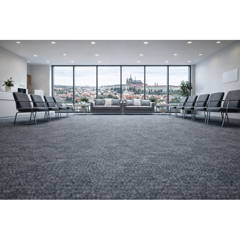 Tmavě šedý metrážový koberec z kolekce Medusa. Pochlubit se může skvělými vlastnostmi jako odolnost vůči slunečnímu záření, schopnost tlumit kročejoý hluk nebo antistatickou úpravou. Navíc zvládne opravdu velkou zátež, patří do zátěžové třídy 33. Díky polypropylenu je odolný vůči skvrnám a oděru. Koberec je vhodný jak do bytových či komerčních prostor.