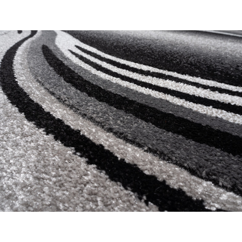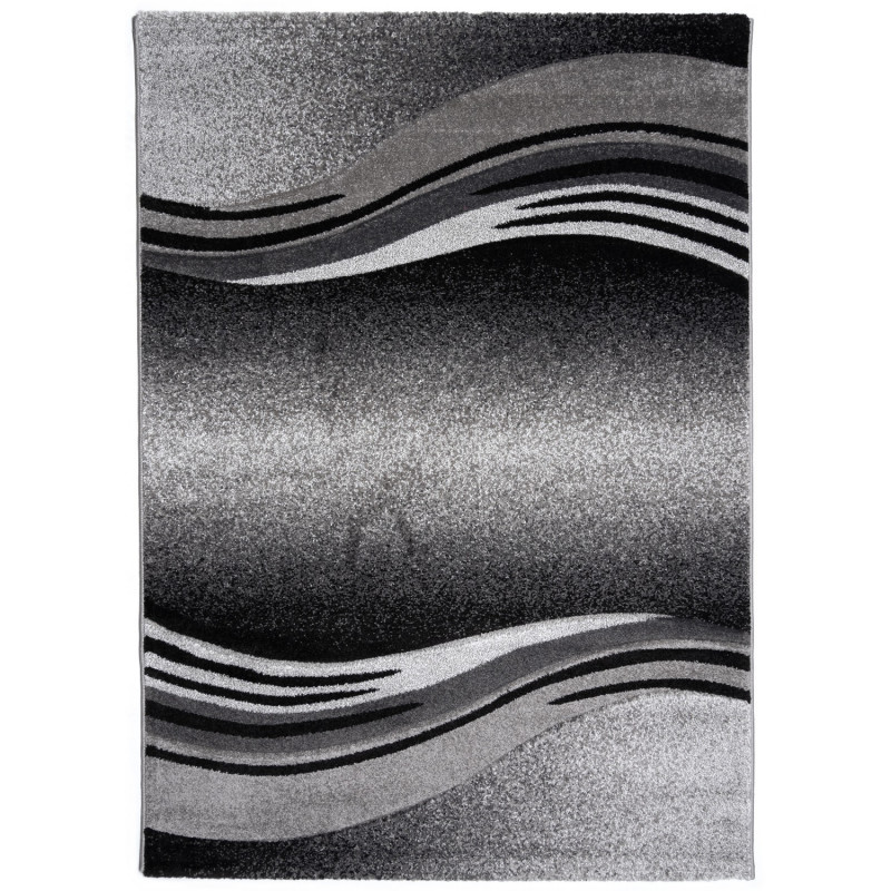 Kusový koberec Enigma grey vyroben ze 100% polypropylenu heatset frizé v designu vlnek hodících se do jakéhokoli interiéru ve Vašem domě či bytě.